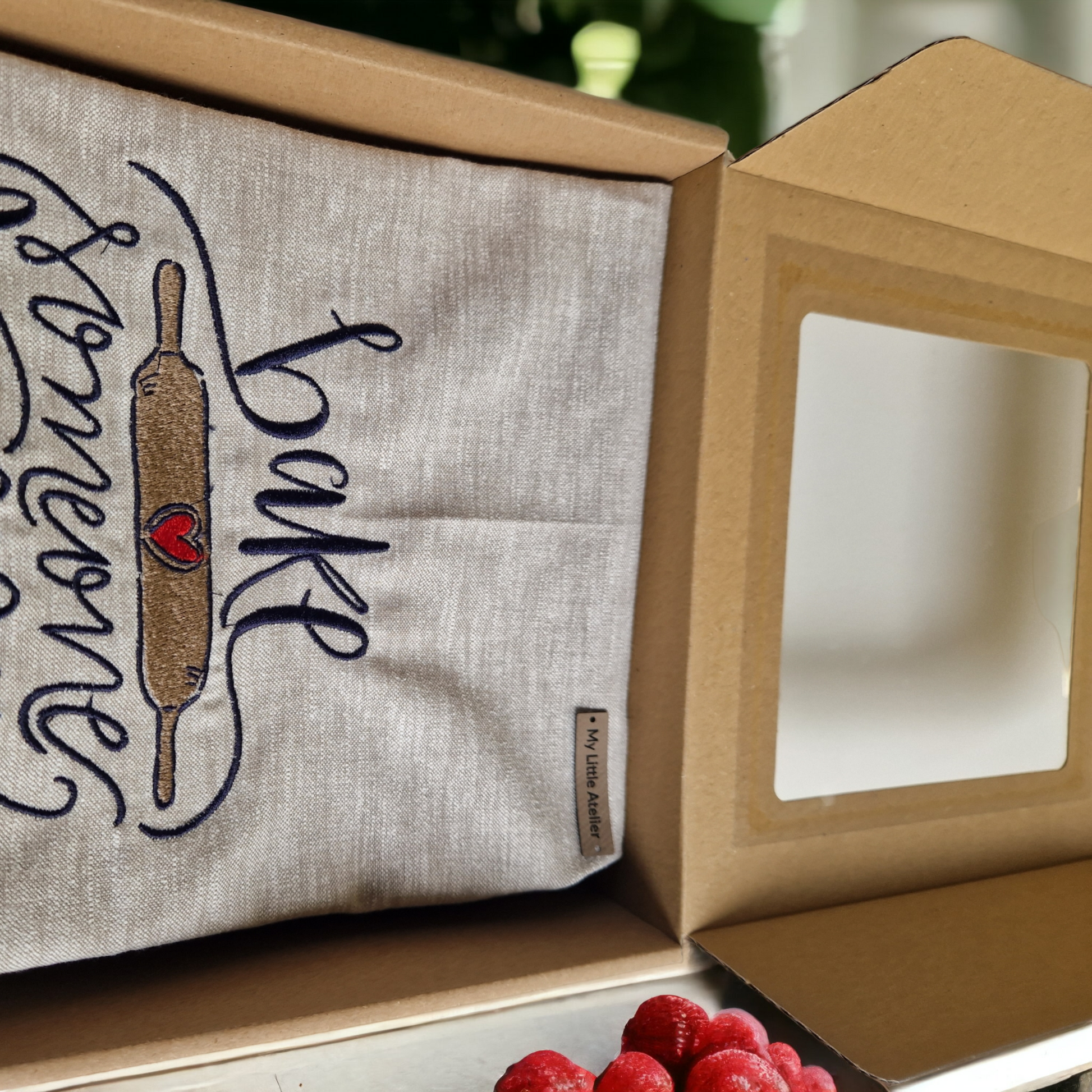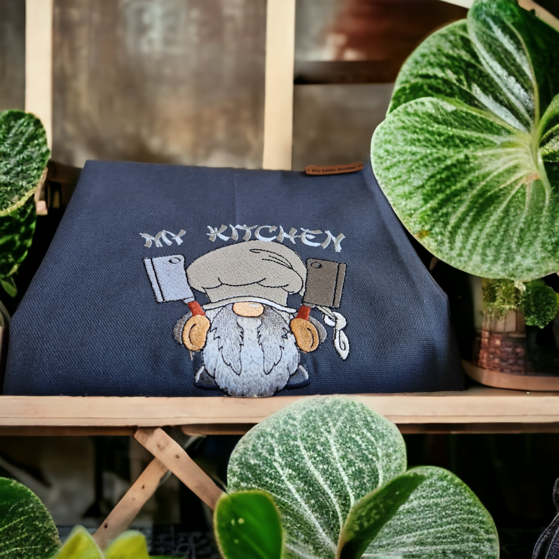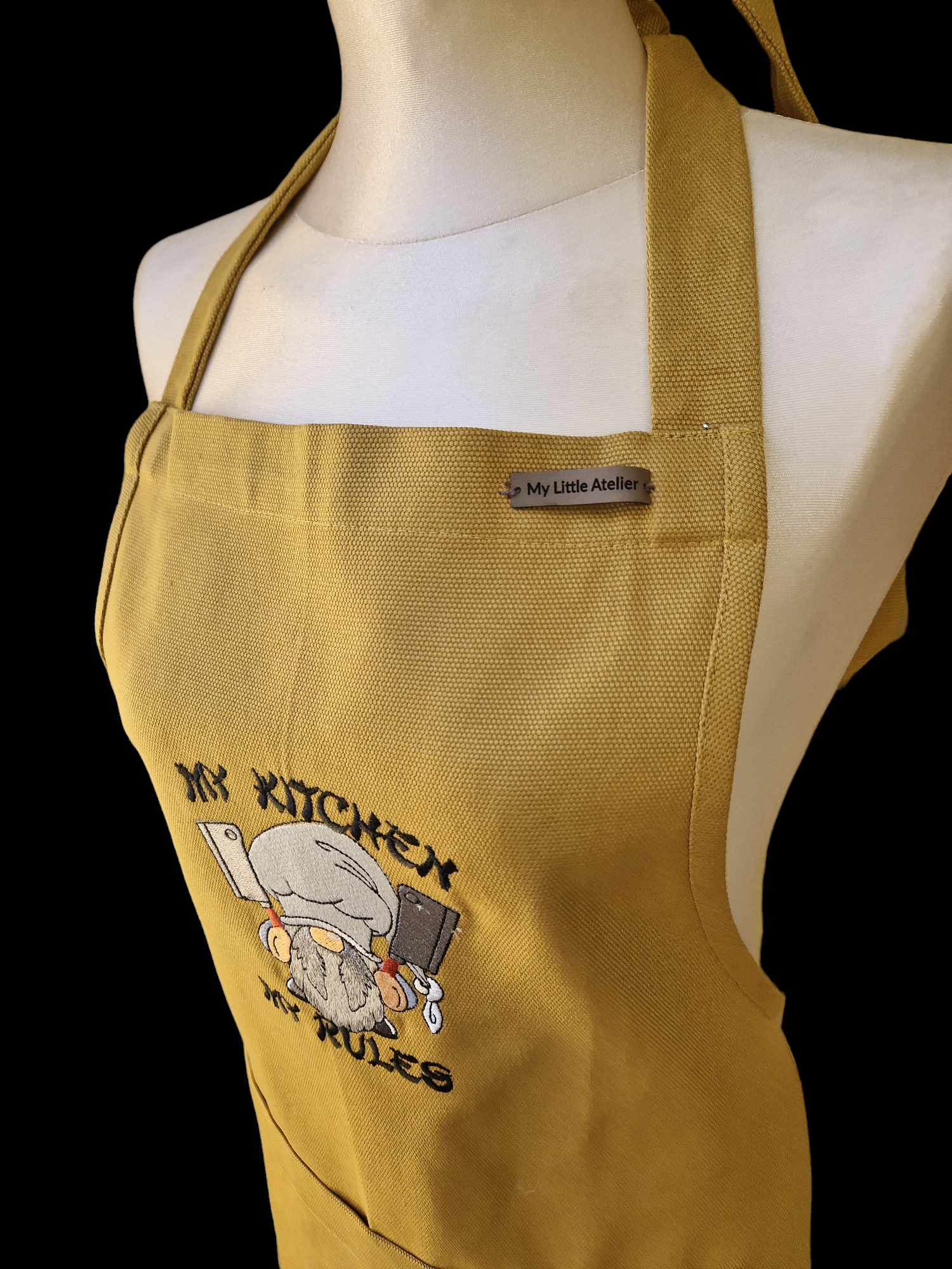 We sew our aprons ourselves and embellish them with an embroidered motif.