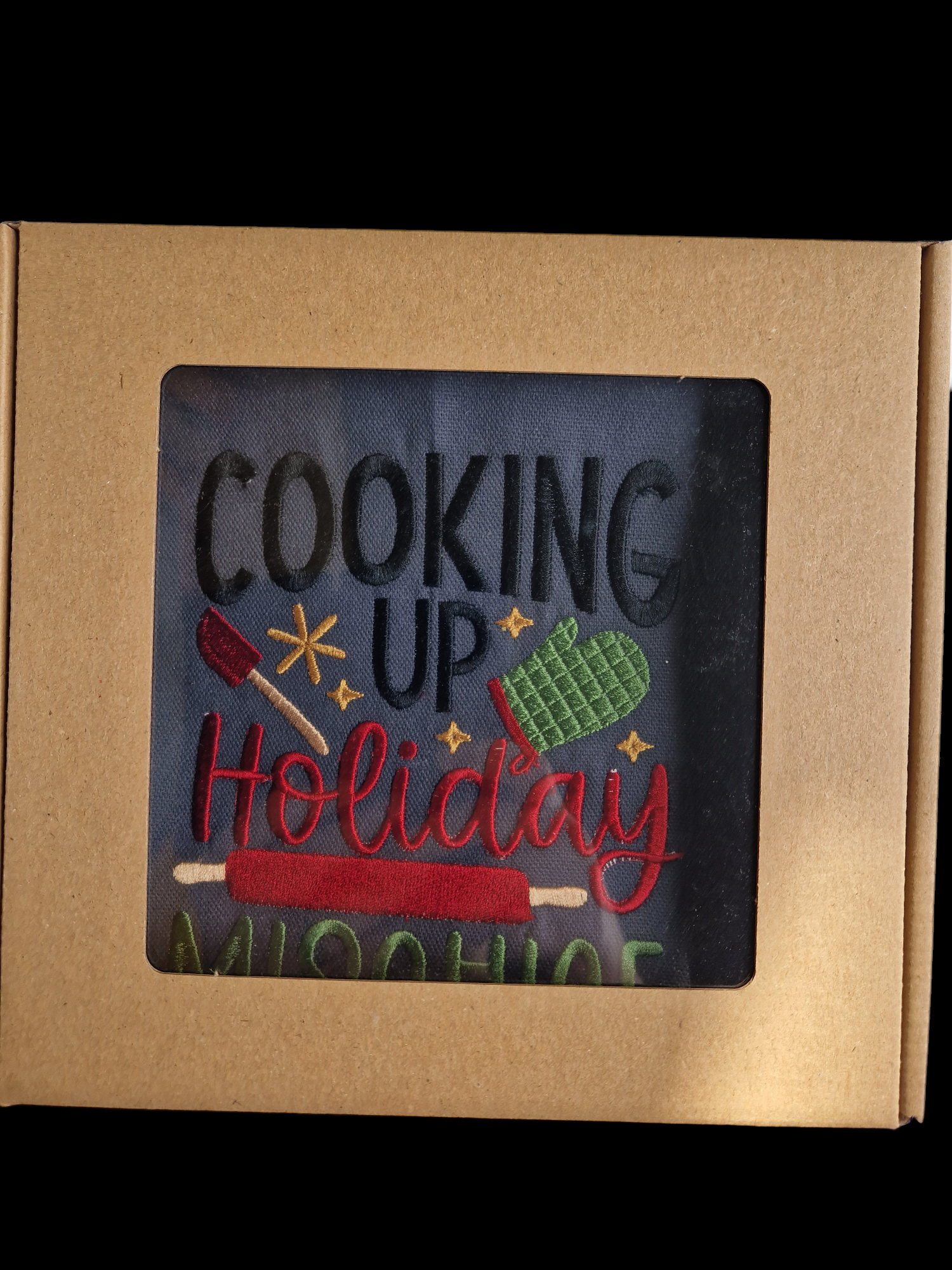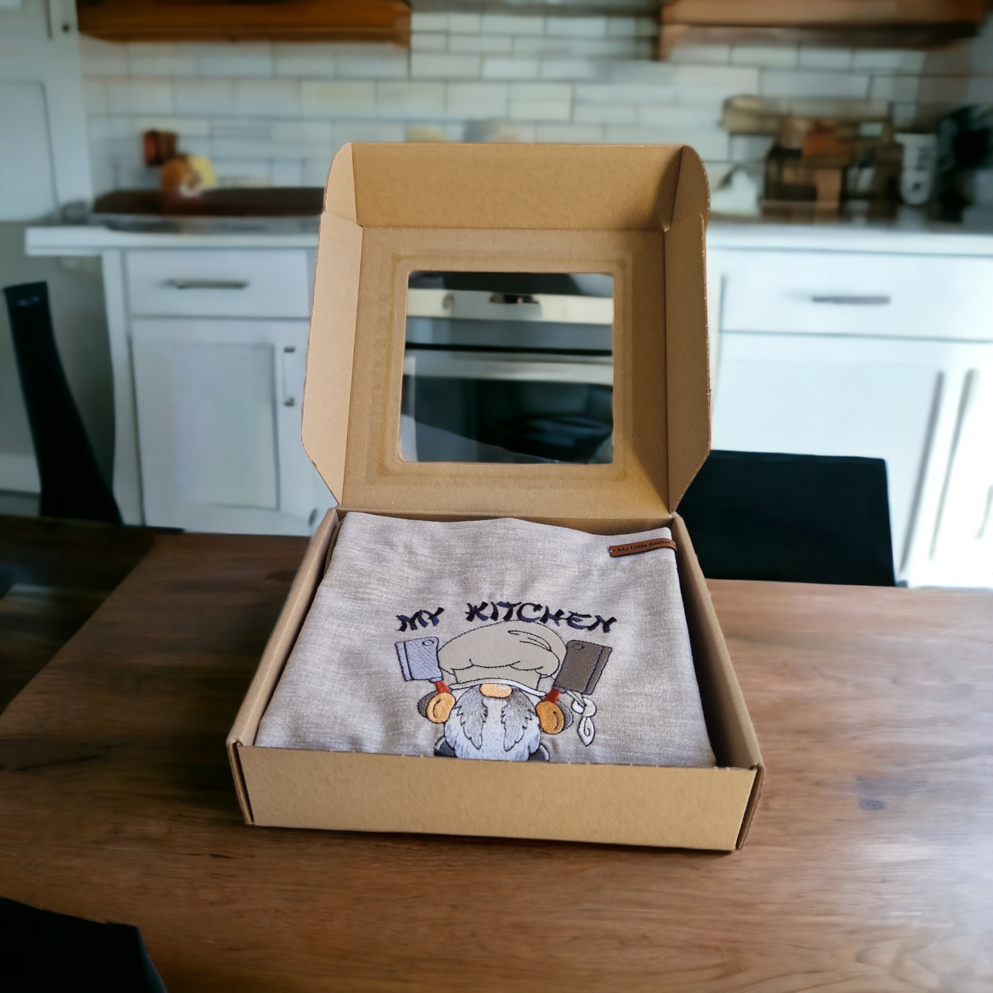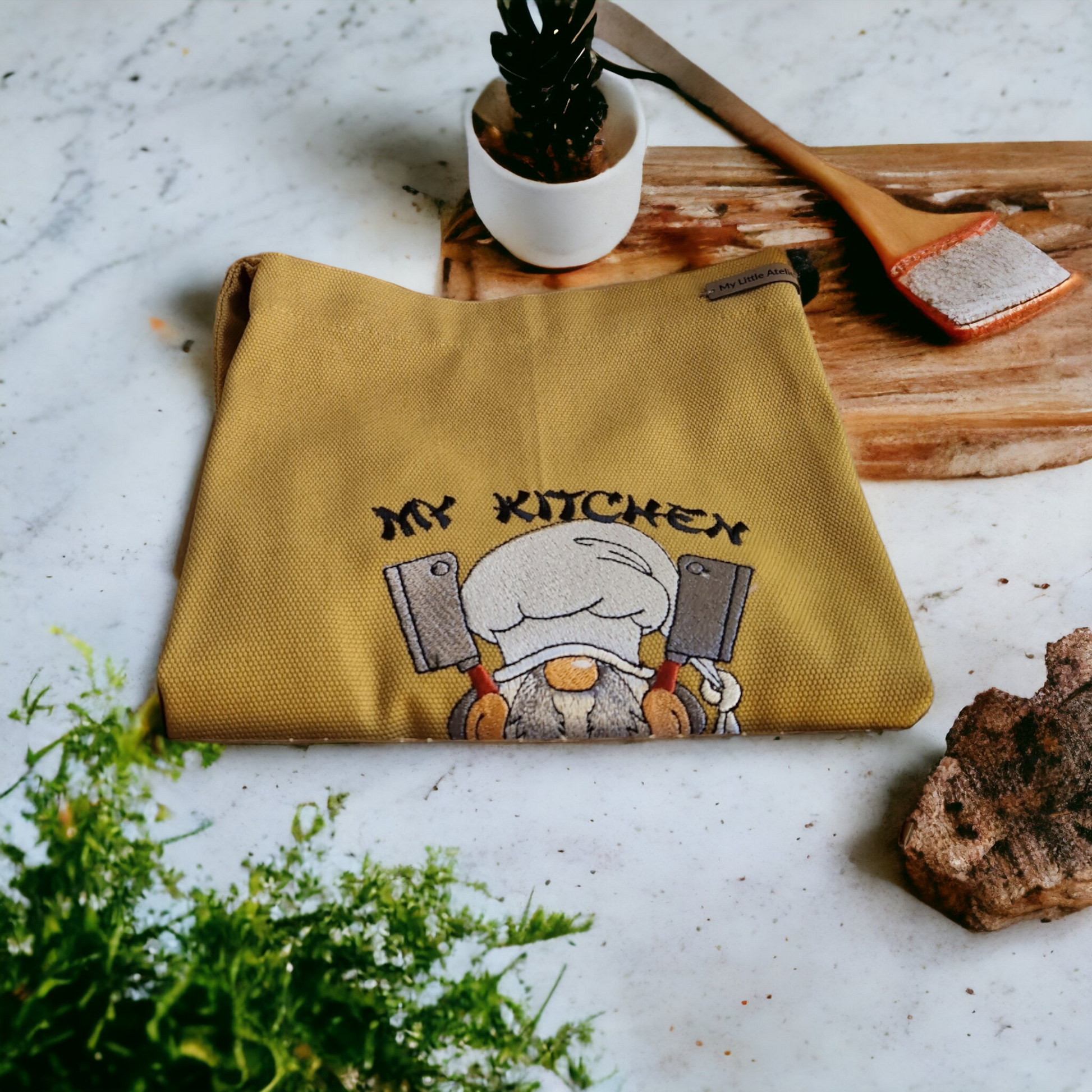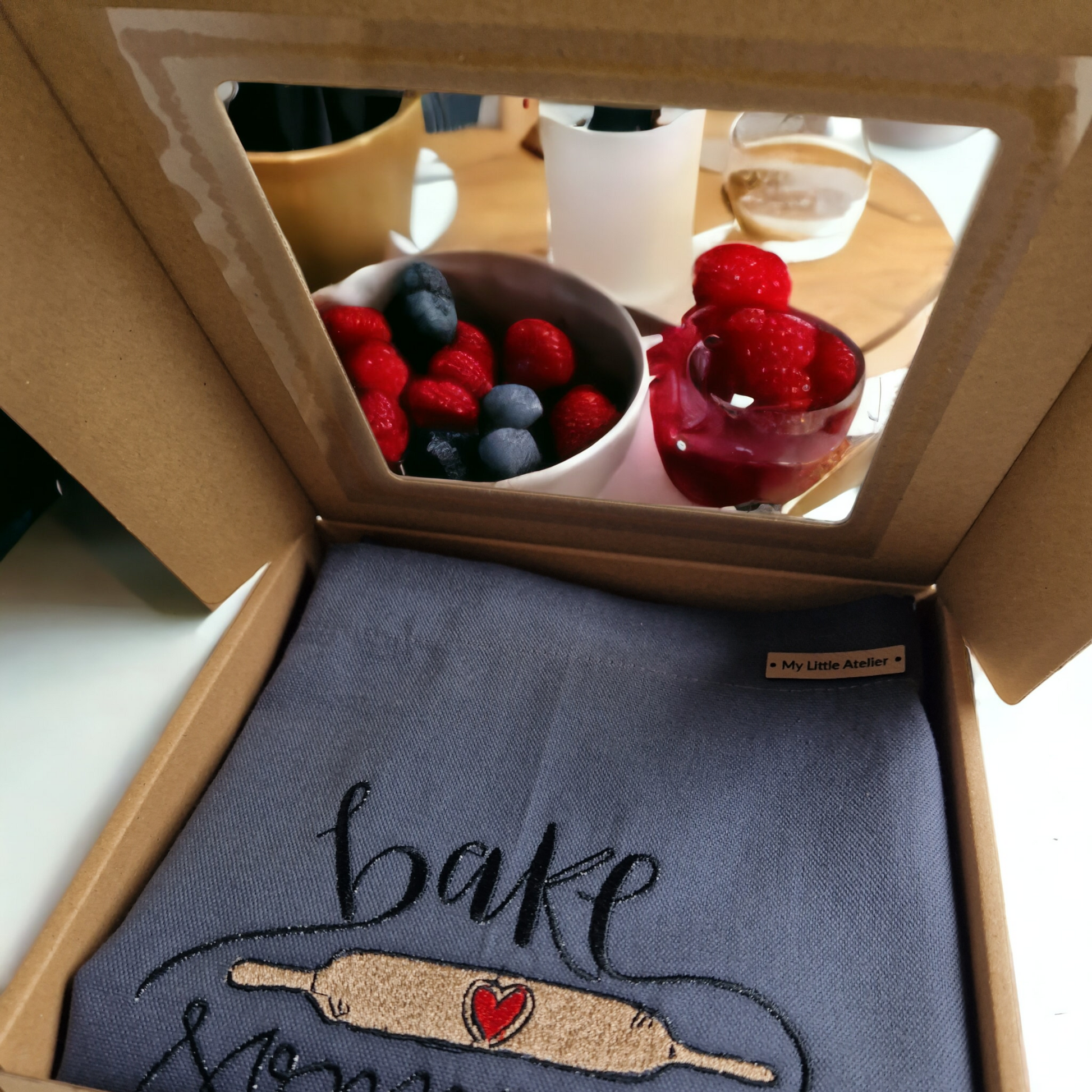 We sew our aprons ourselves and embellish them with an embroidered motif.