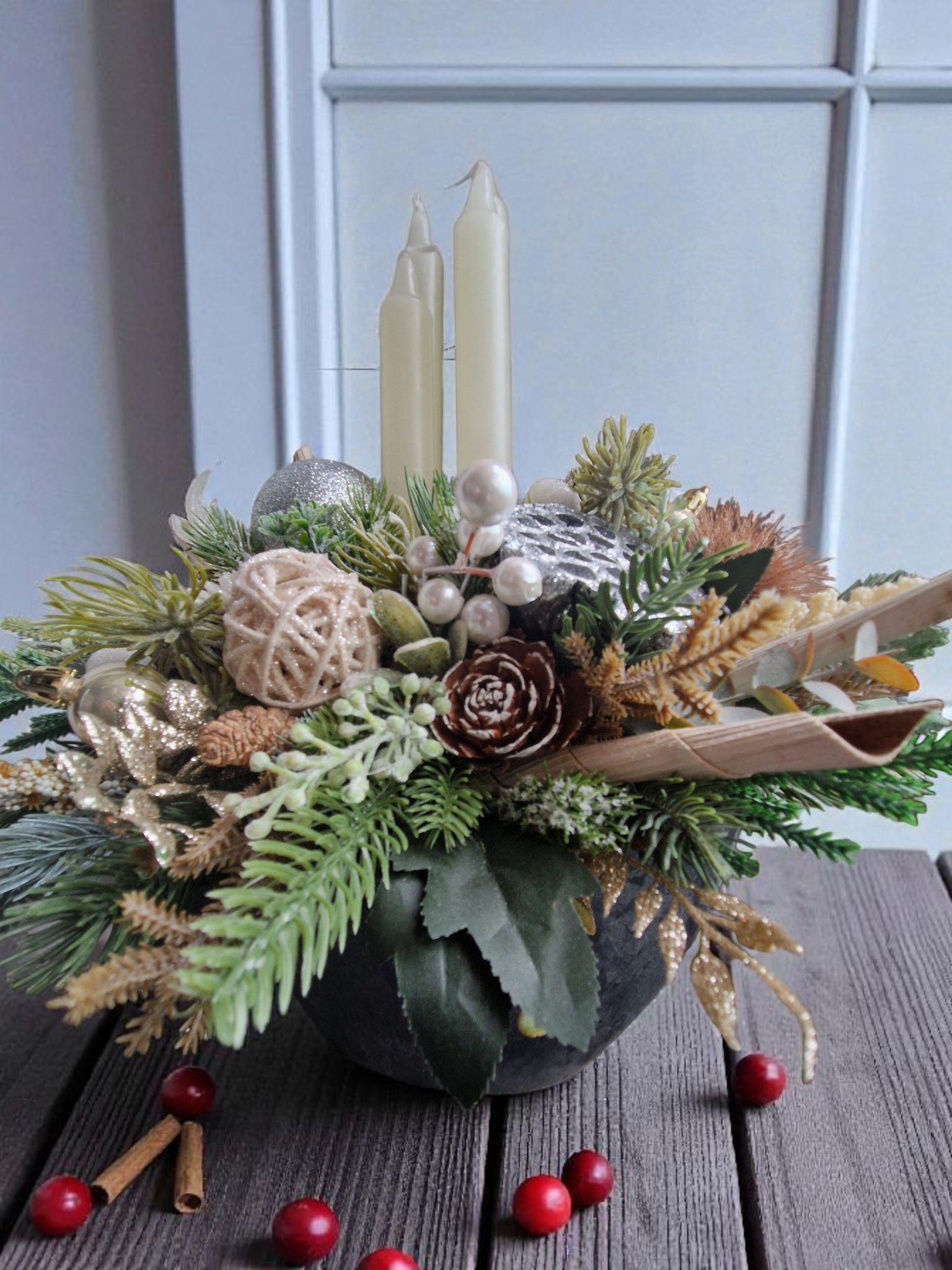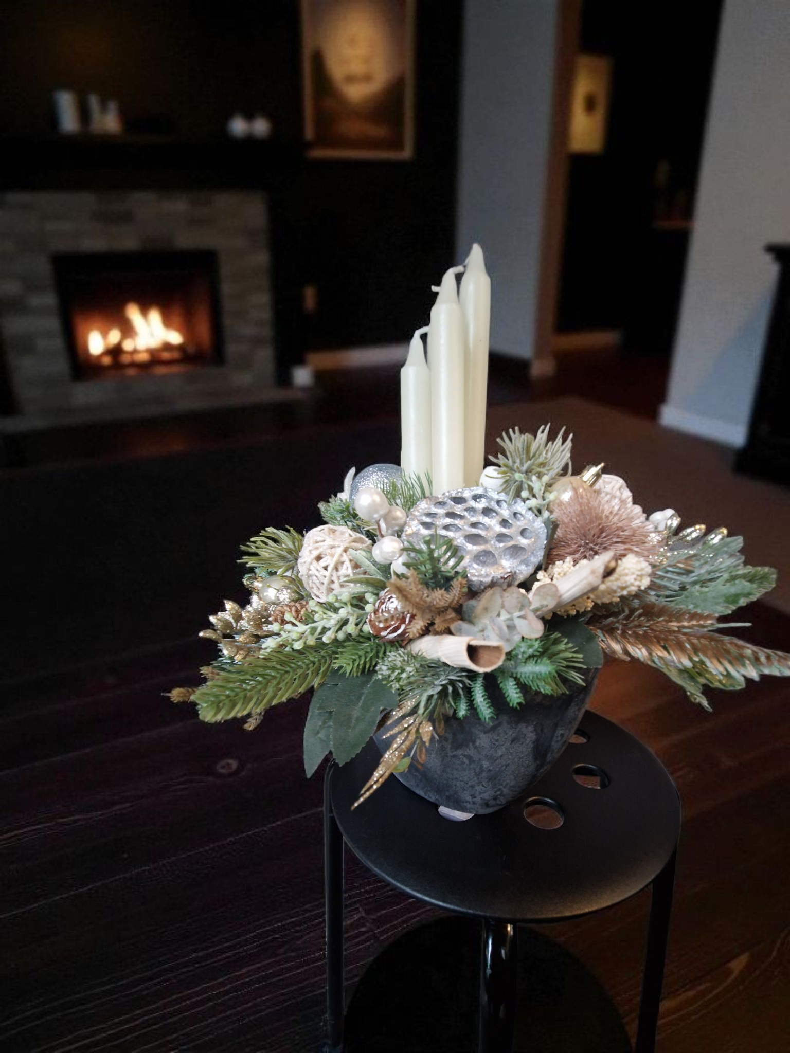 This arrangement was created in our studio with meticulous attention to detail. Our products are handmade and unique, as we only have a single pieces of each decoration.