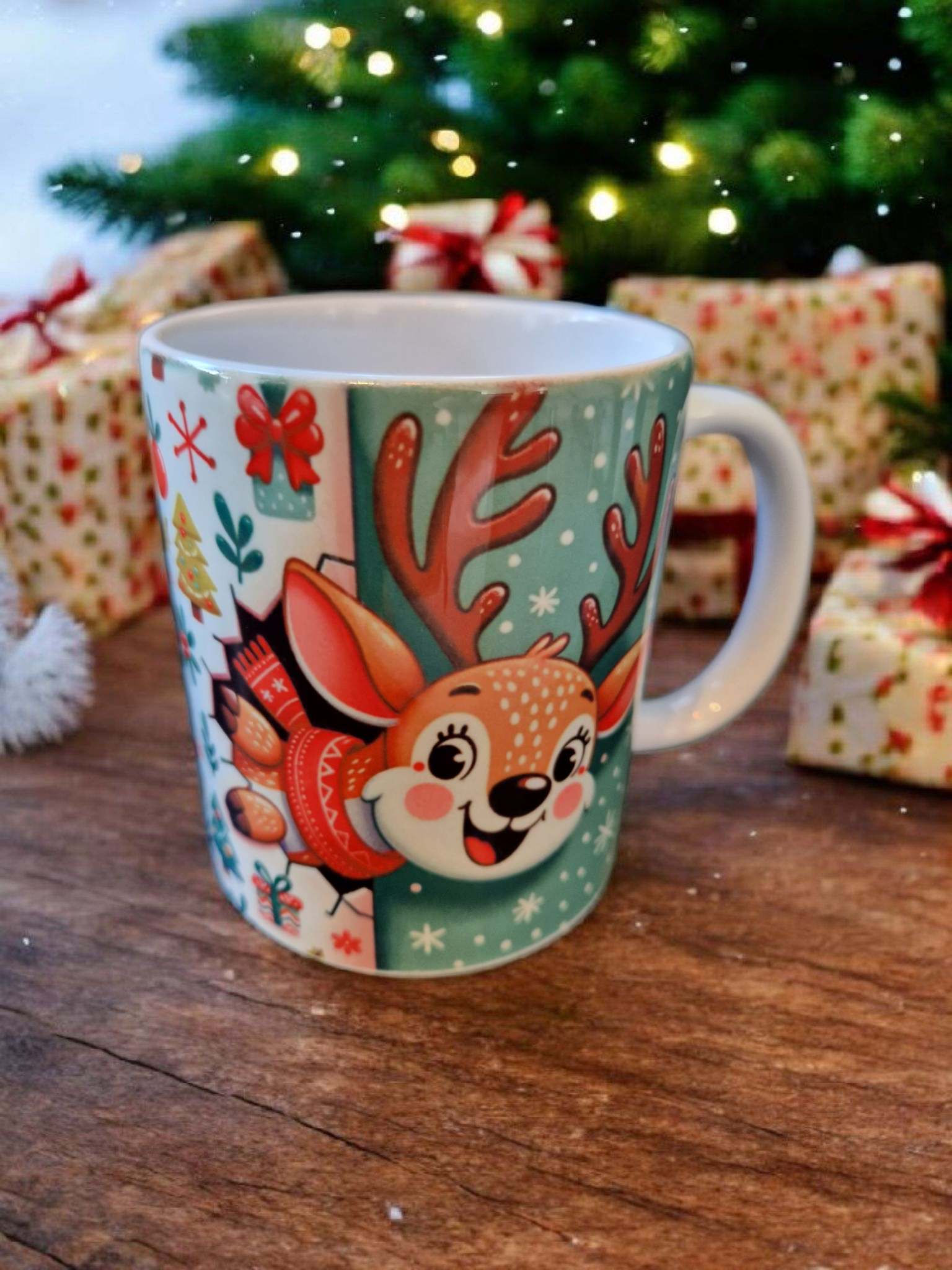 This multicolored mug with a Christmas motif will make your holiday coffee even more enjoyable.