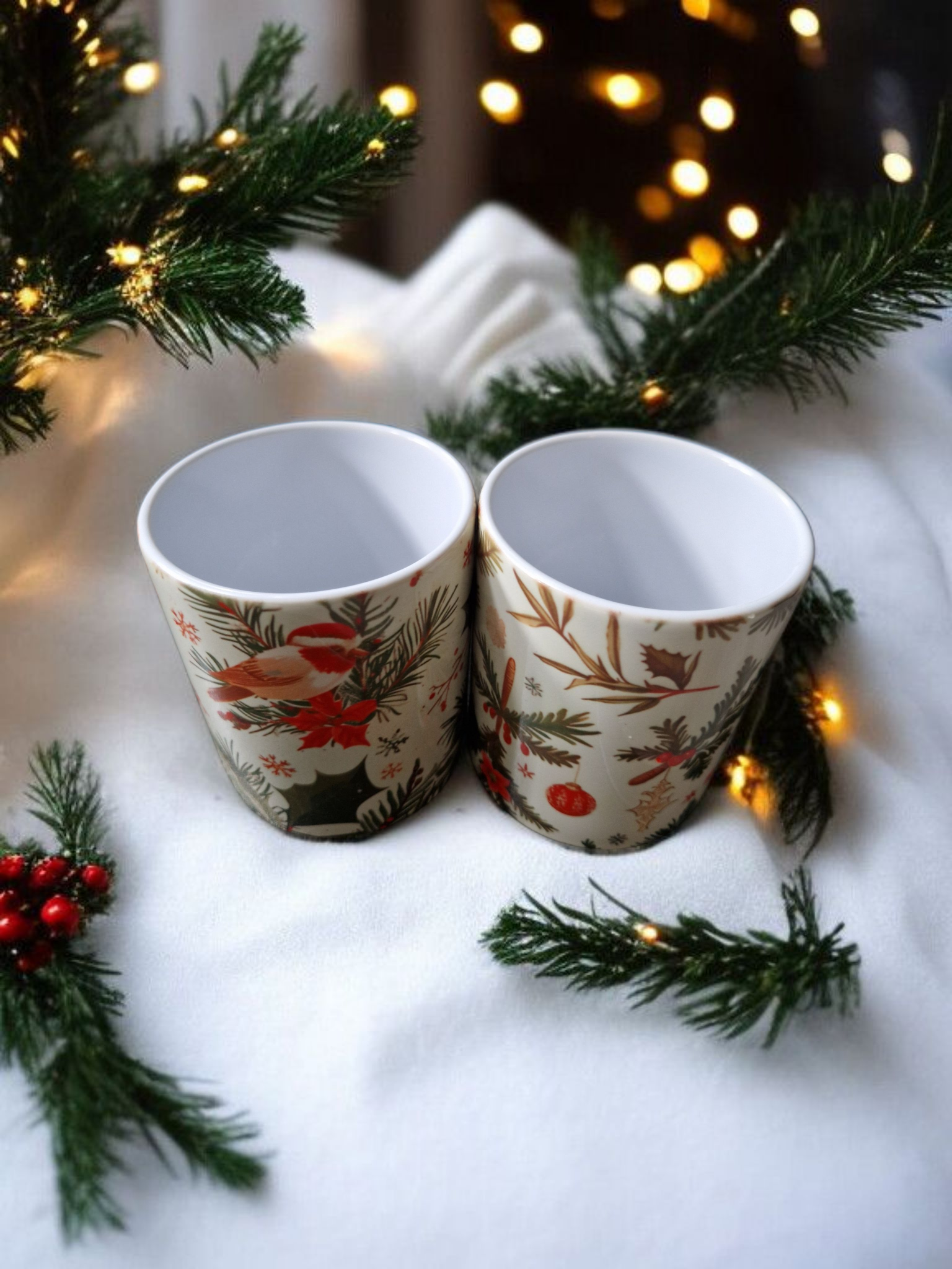 The set includes two mugs in white colour. Both mugs feature similar Christmas motif.