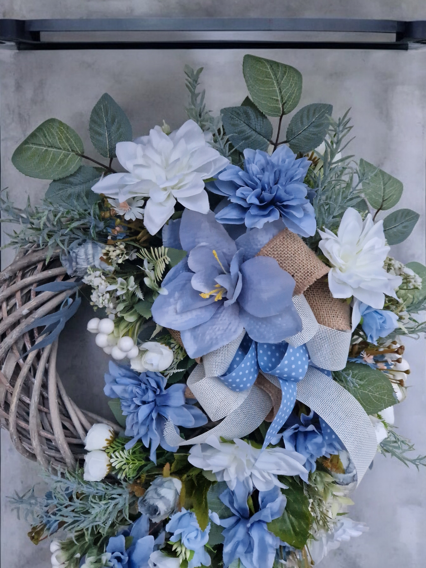 The wreath is made on a wicker base with a diameter of 35cm. The total size of the decorated wreath is approximately 45 cm.